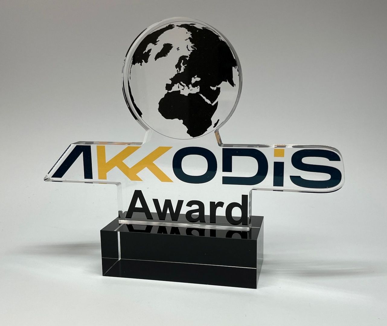 Durch sein außergewöhnliches Design, ist dieser, knapp 20cm hohe Award, ein echter Eyecatcher. Da sich der Kunde einen hohen, schwarzen Sockel gewünscht hat, es aber kein durchfärbtes Acrylmaterial in dieser Stärke gibt, haben wir den Sockel zweiseitig, vollflächig schwarz bedruckt.