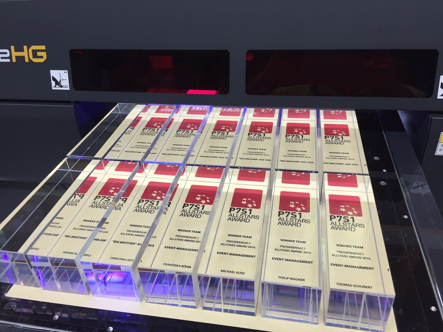 Die ALLSTARS AWARDS wurden für die Kategorien "Creativity & Innovation", "Business Performance", "Best Young Manager", sowie "Environmental & Sustainability" ausgelobt und in drei verschiedenen Größen vergeben. Während die mittleren und kleinen Säulen komplett aus klarem Acrylglas gefertigt wurden, sind die Ehrenpreise mit einem hohen Metallsockel versehen. Die Personalisierung erfolgte durch zweiseitigen, digitalen Farbdruck. Außergewöhnliche Trophäen, für außergewönliche Leistungen.