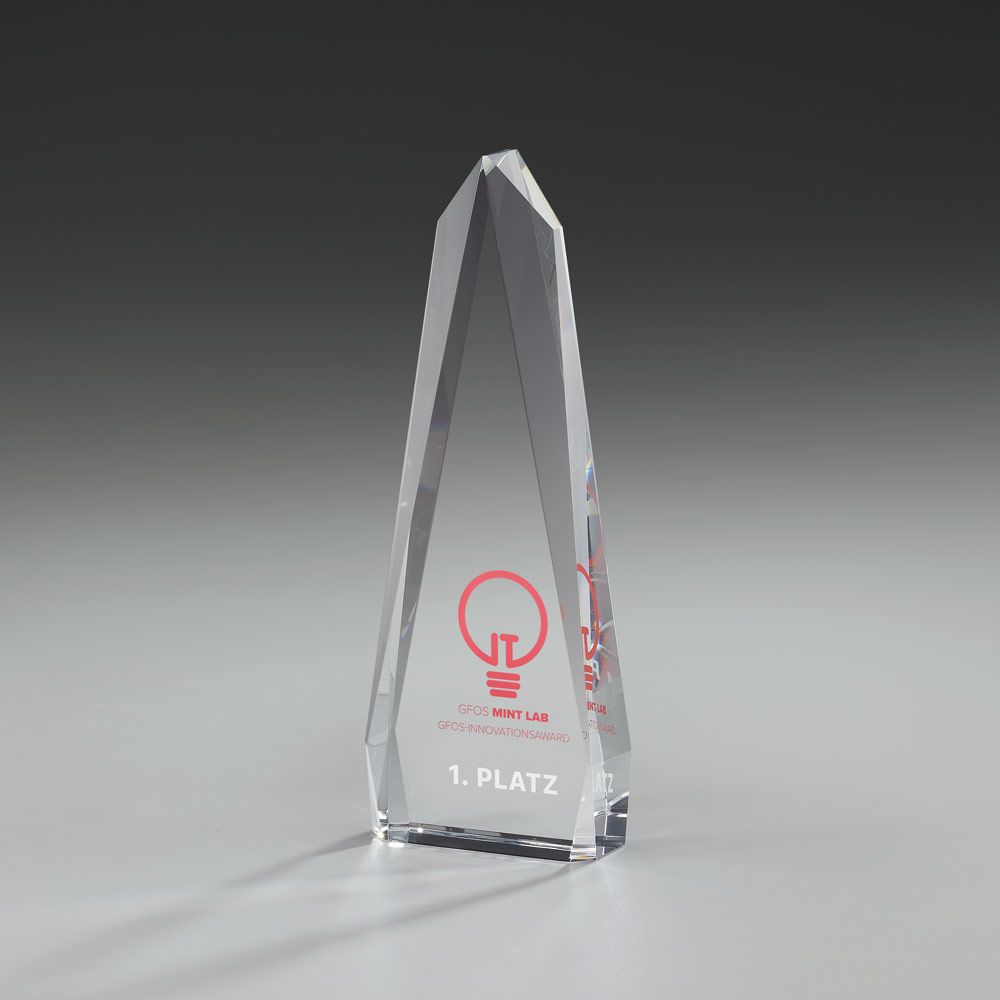 Mit den breiten Facetten und dem glänzenden Kantenschliff wirkt der 30mm starke Glasblock wie ein Kristallberg.