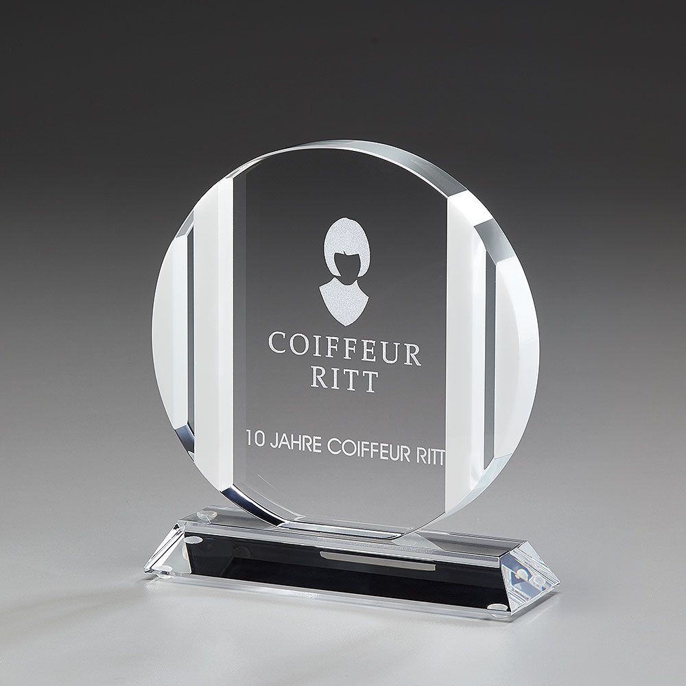 Glas-Award mit eingebetteten, weißen Glassäulen - rund