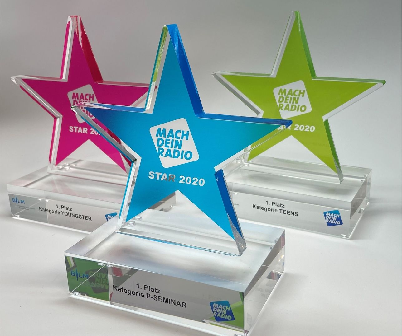 Farbenfrohe Stern-Awards der BLM (Bayerischen Landeszentrale für neue Medien) für die Kategorien "Youngster", "Teens" und "P-Seminar".