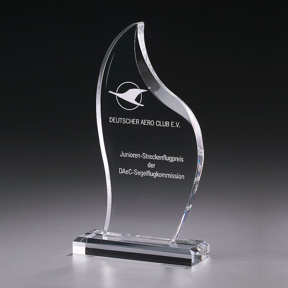 Trophäe aus Acryl in Form einer Flamme - ähnlich dem "Flame Award"