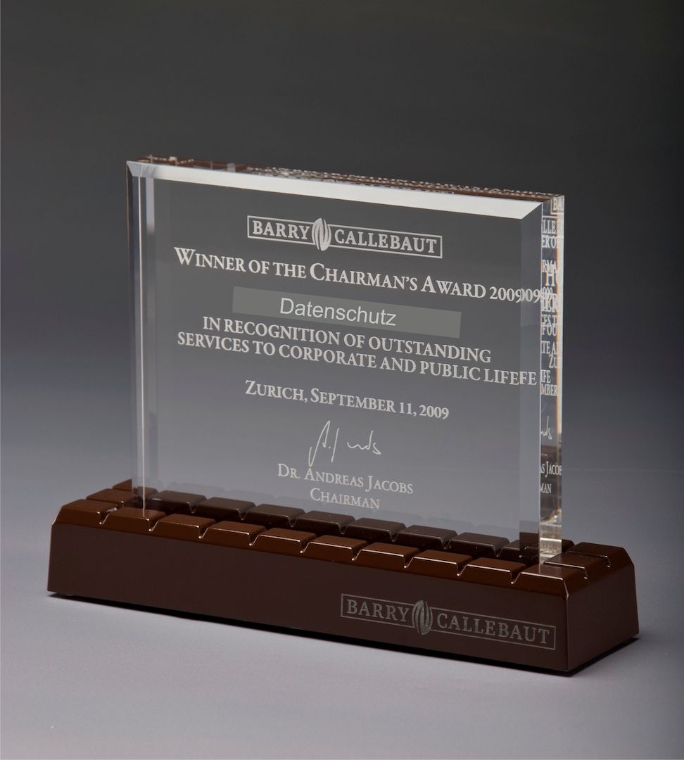 Eine "schokoladige" Auszeichnung, passend zur Kernkompetenz des Kundens - sieht toll aus und vielleicht ist der Wiedererkennungswert jetzt sogar noch besser.