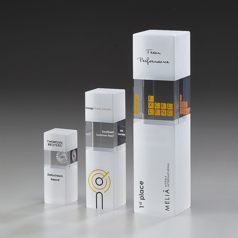Glas-Säulen-Award, sandgestrahlt, 3-er Serie