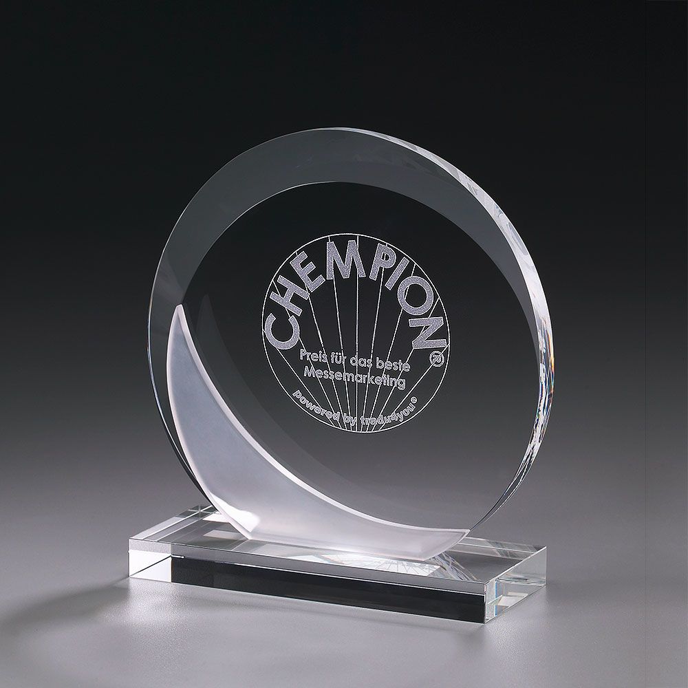 Runder Glas-Award, mit halbrunder, sandgestrahlter Applikation