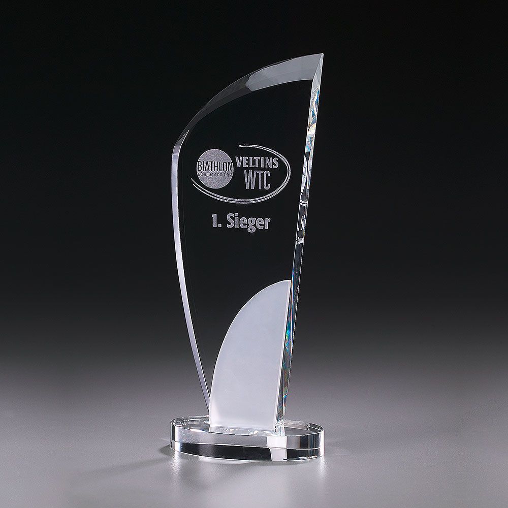 Stilvoller Glas-Award mit bogenförmiger, sandgestrahlter Applikation