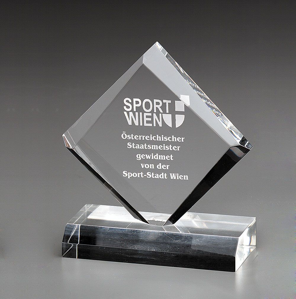 Trophäe aus Acrylglas, quadratisch mit breiter Facettierung