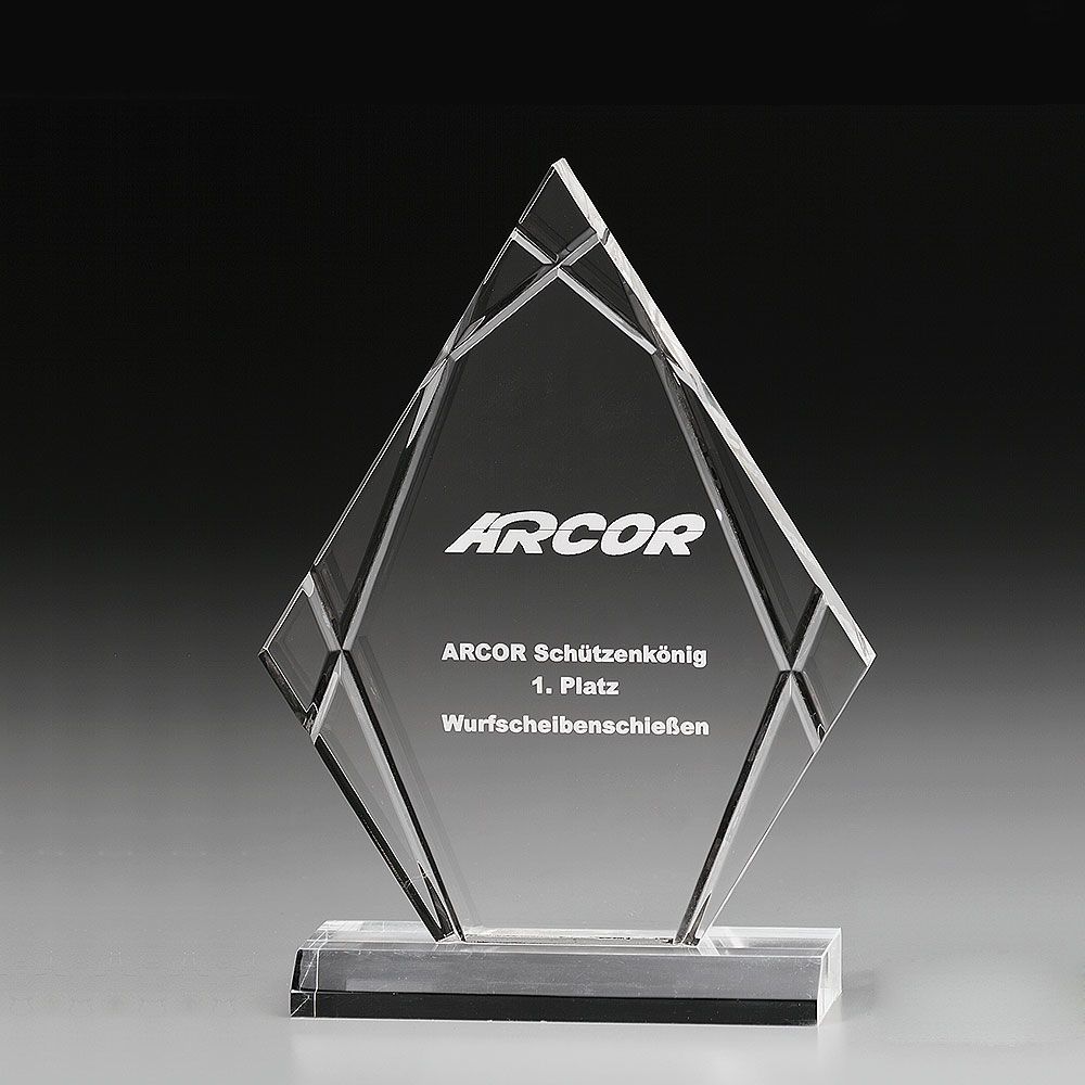 Trophäe aus Acrylglas mit effektvoller Zierfräsung - als Raute