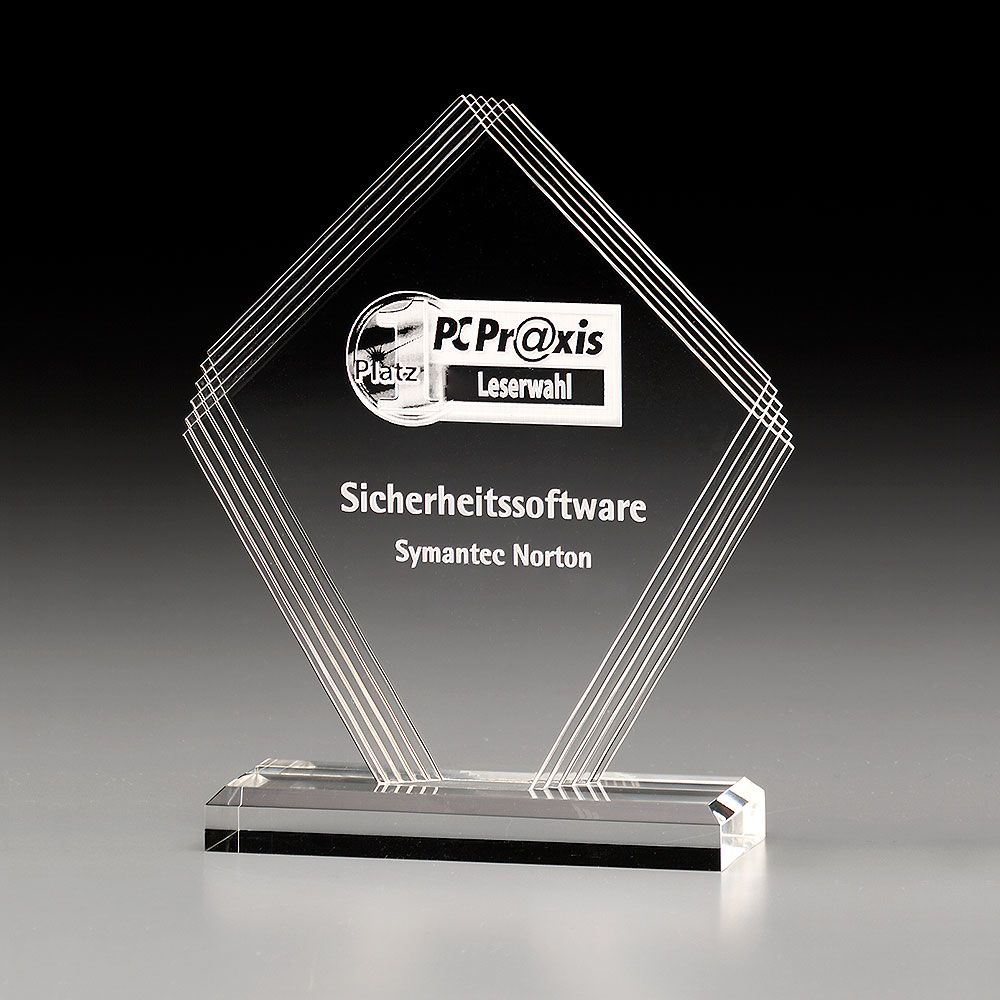 Trophäe aus Acrylglas in Rautenform mit Rillenoptik
