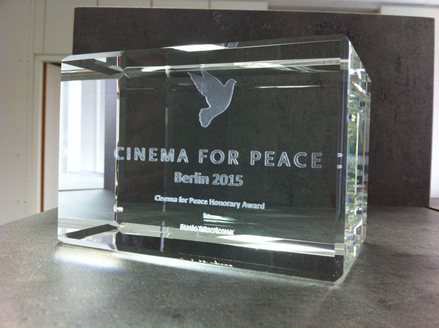 Diese Auszeichnung wurde anlässlich des "Cinema for Peace" Filmfestivals in Berlin vergeben. Der 3D-File umfasst das Logo, sowie Text.
