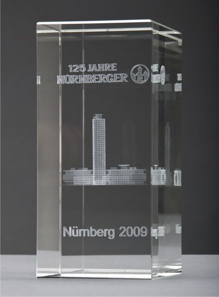 Glasquader mit 3D-Laserinnengravur "Business-Tower - Nürnberg"