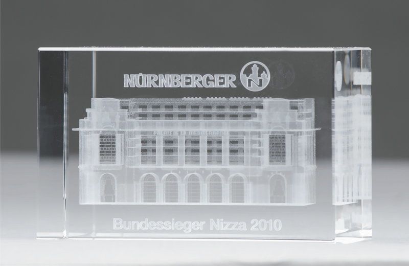 Glasquader mit 3D-Laserinnengravur "Palais de la Mediterranee Casino - Nizza"