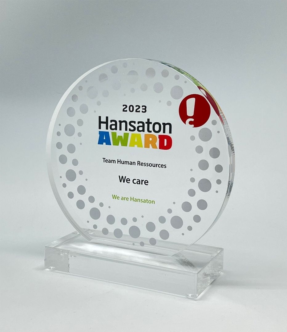 Unser "EcoAcryl-Award Round" (siehe Kategorie "EcoAcryl-Awards") mit 20mm hohem Sockel, einseitig bedruckt, Laserschnittverfahren - und 100% recycelt!!