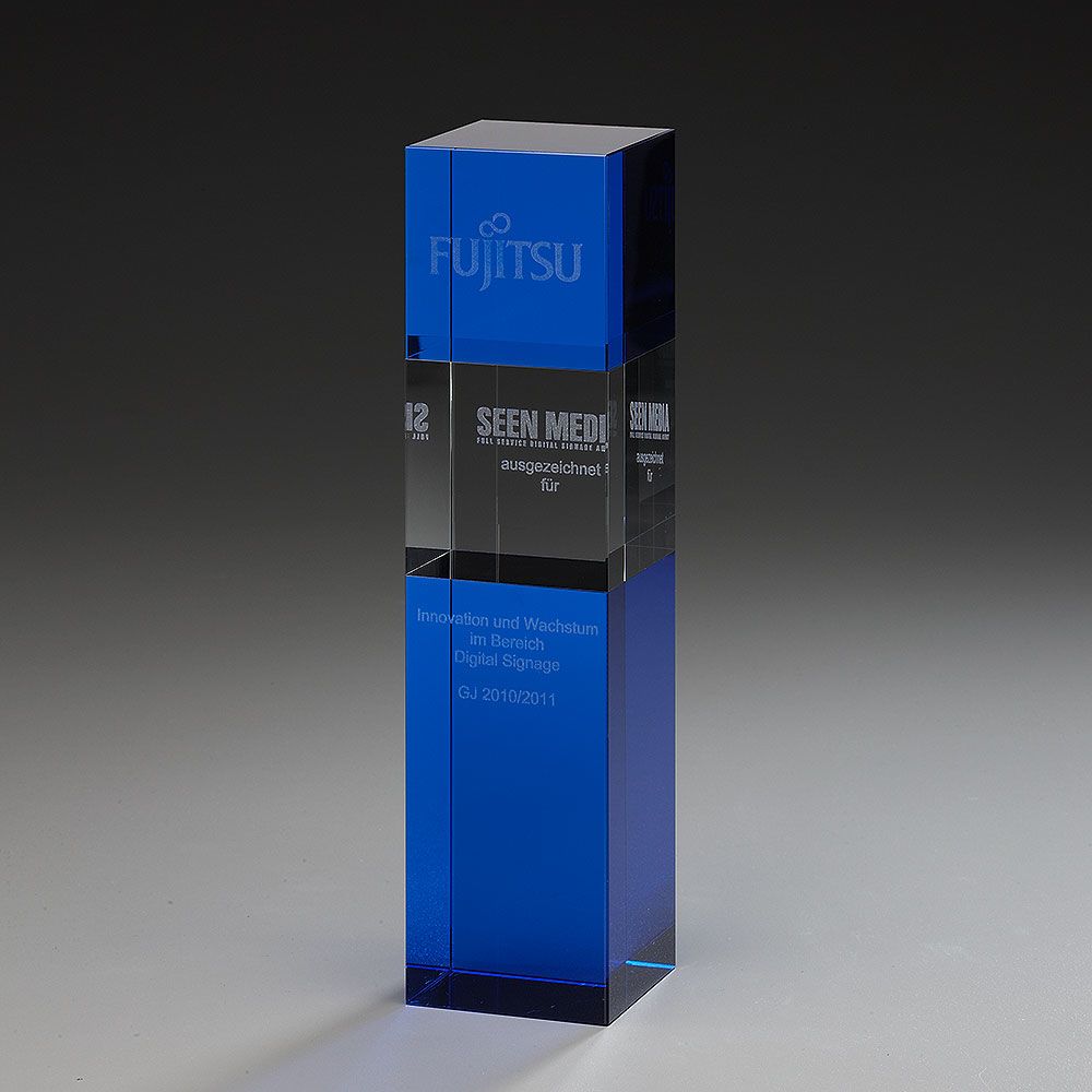 Glas-Säulen-Award, blau, transluzent/durchscheinend