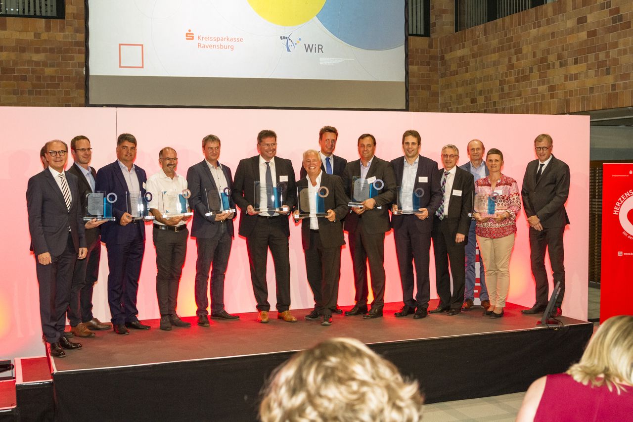 Der Preis, der im zweijährigen Turnus bereits zum neunten Mal durch die Wirtschafts- und Innovationsförderungsgesellschaft Landkreis Ravensburg (WiR) gemeinsam mit der Kreissparkasse Ravensburg vergeben wurde, ist mit mehr als 10.000 € dotiert. Neben drei gleichwertigen ersten Preisen wurden durch die Jury auch insgesamt sechs Auszeichnungen für innovative Produkte von Unternehmen aus dem Landkreis vergeben.