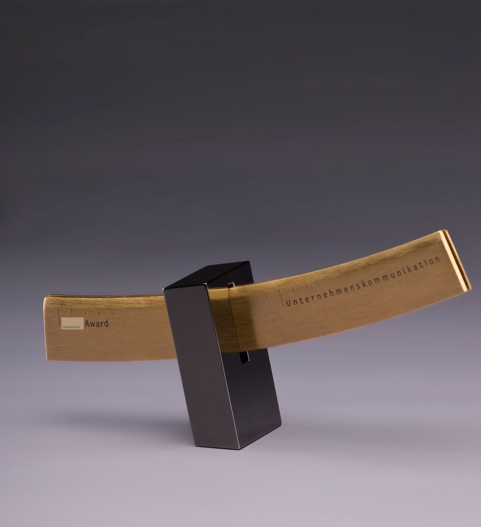 Eine zeitlos schöne Sonderanfertigung mit hohen technischen Anforderungen: Der Quader im Zentrum des Awards und das Lineal bestehen aus Messing und wurden aus einem einzigen Stück CNC gefräst, galvanisch veredelt und schutzlackiert. Das leicht gebogene Lineal ist so platziert dass der Award in der Balance ist. Die Metall-Trophäe ist einem Sextanten (Messinstrument)nachempfunden und wurde je nach Platzierung in unterschiedlichen, metallischen Oberflächenfarben vergeben
