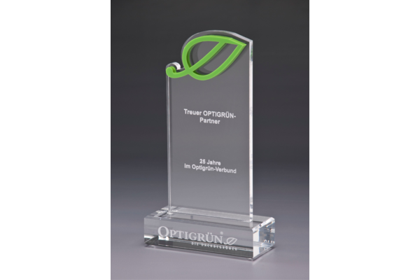 Ein schlichter und schöner Acryl-Award, der jährlich als "Treue-Award" an langjährige Vertriebspartner Lieferanten vergeben wird. Den besonderen Touch verleiht ihm der farbige Akzent des Unternehmenslogos, welches aus 5mm starkem durchfärbtem Acrylglas ausgeschnitten und aufgeklebt wird.