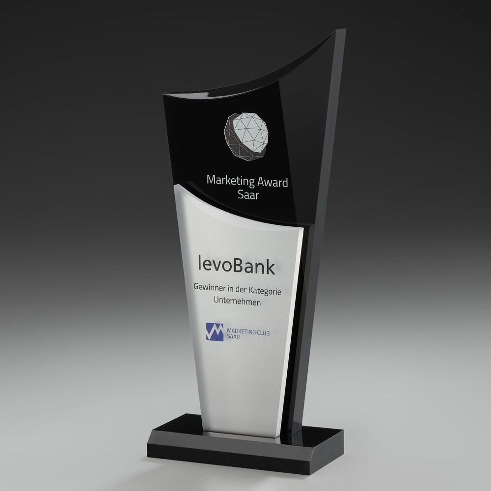 Acrylglastrophäe mit zwei entgegenläufigen Acryl-Designs