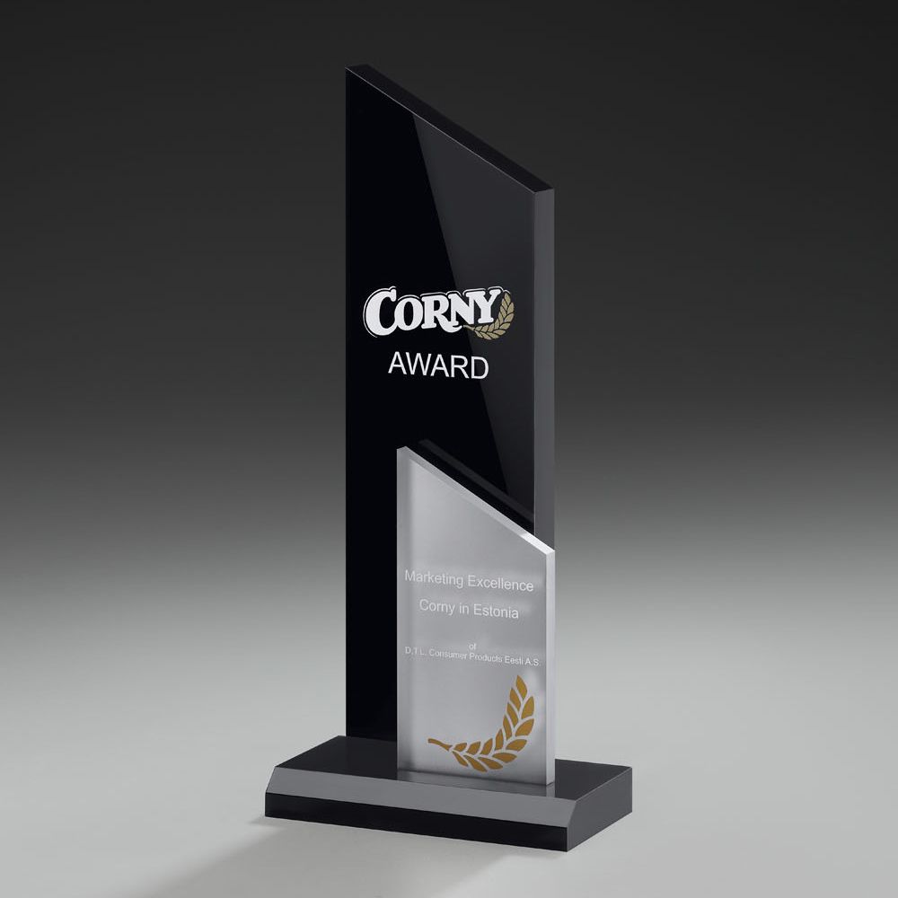 Das bei unseren Kunden mit Abstand beliebteste Awarddesign: Rechteckig, abgeschrägt , klare Linien - hier in einer Kombination mit schwarz glänzendem Acrylglas + spiegelndes Acryl Ice = ein toller Look! Sie finden alle anderen "Peak-Modelle" indem Sie einfach im Suchfeld "Peak" eingeben.