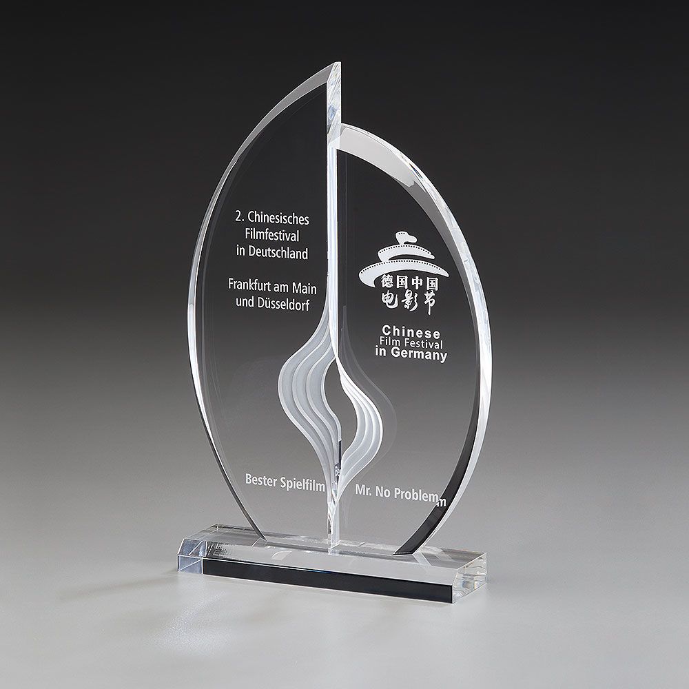 Acrylglastrophäe mit zwei ungleichen, halbrunden Oberteilen