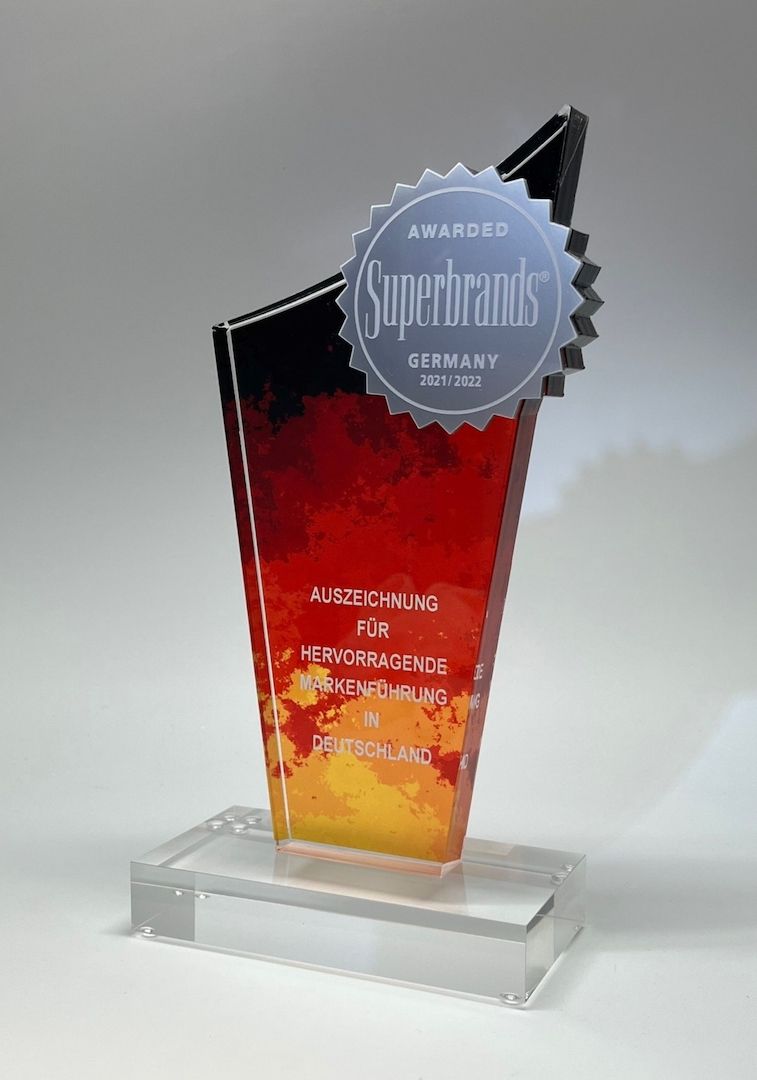Acrylglas-Trophäe für hervorragende Markenführung in Deutschland 2021/2022