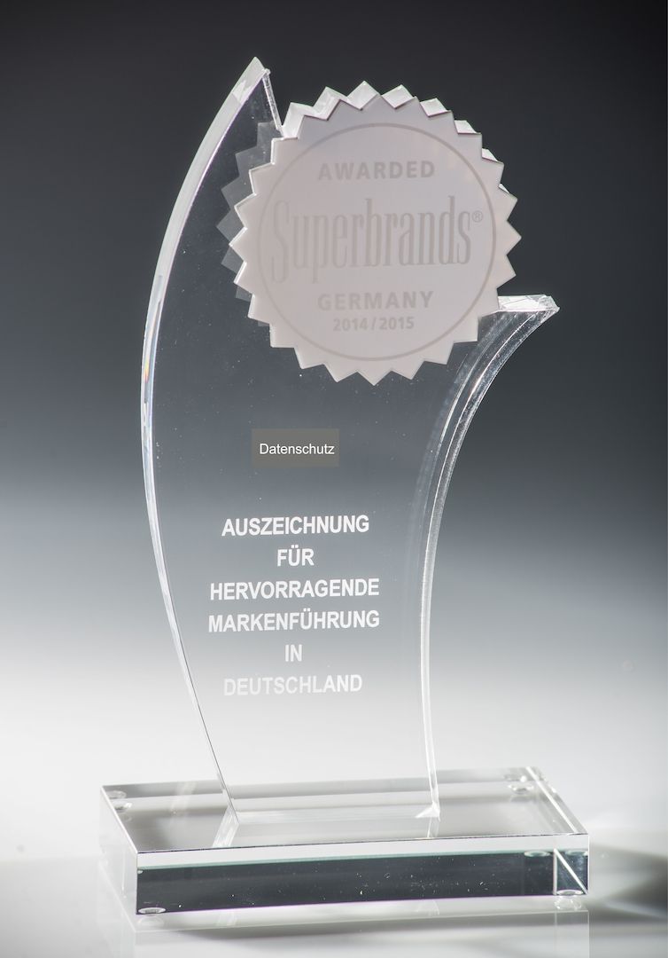 Acrylglas-Trophäe für hervorragende Markenführung in Deutschland