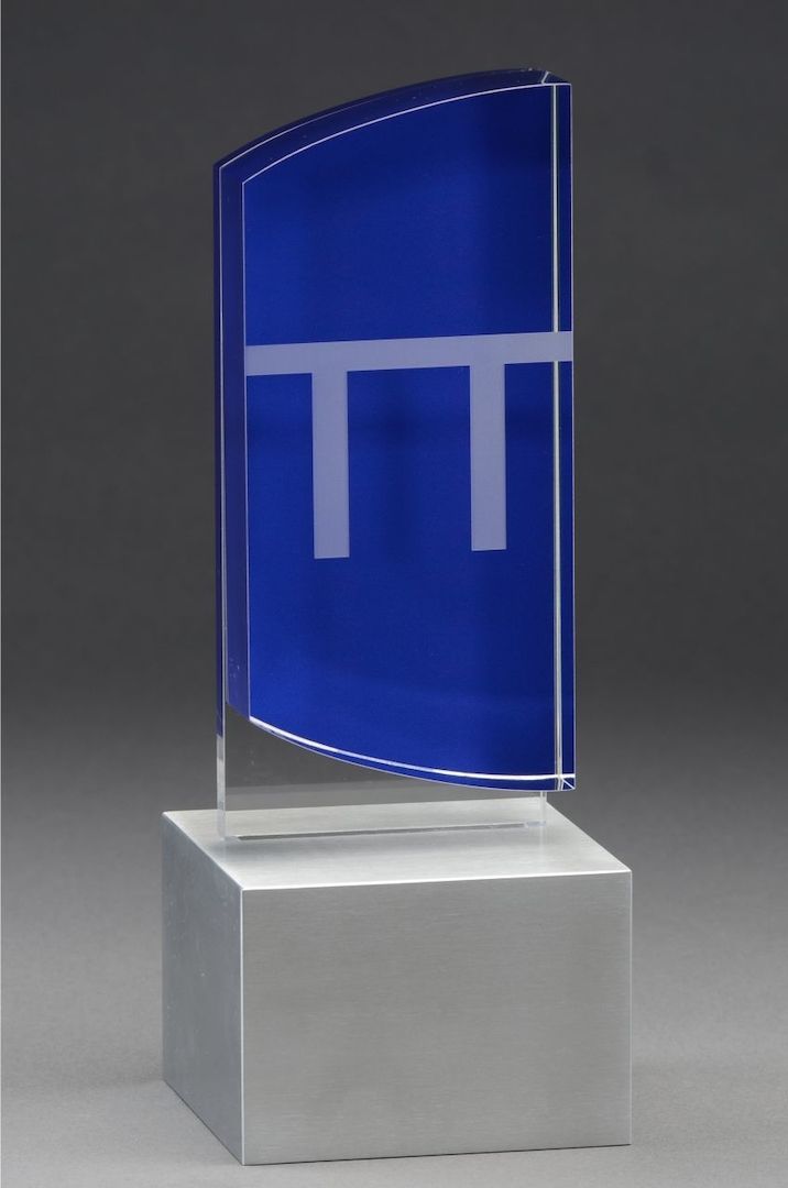 Massive Auszeichnung mit innenliegendem Farbdruck auf Metallsockel
