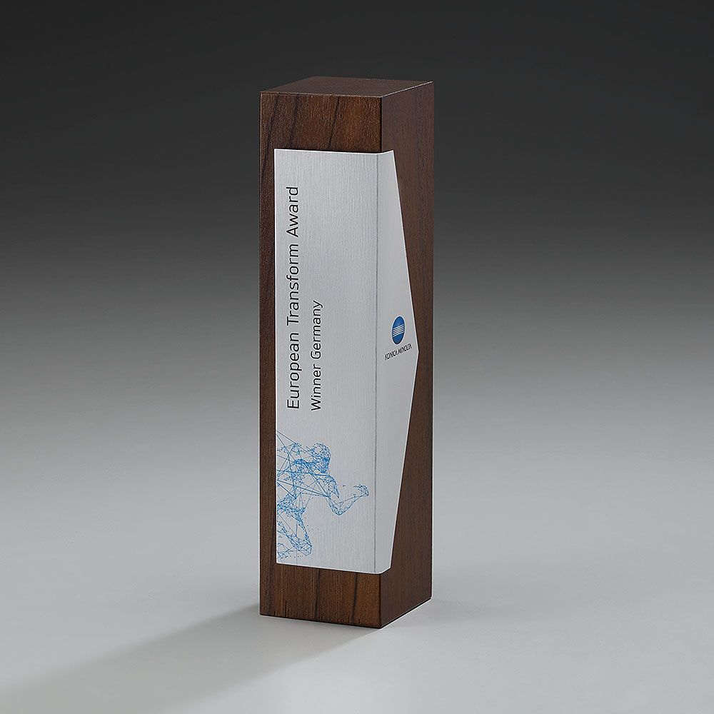 Holzsäulen-Award - aus Nußbaum mit "Metallic-Art-Auflage"