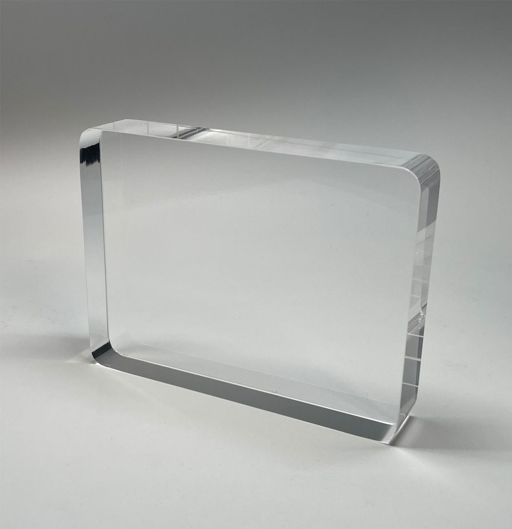 Acryl-Aufsteller/Acrylglasblock rechteckig, 30mm Materialstärke - mit abgerundeten Ecken