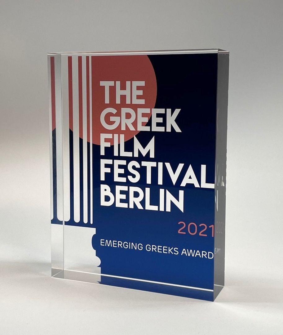 Schöner Award-Aufsteller im Standardformat, mit vollflächigem Farbdruck auf der Rückseite.
