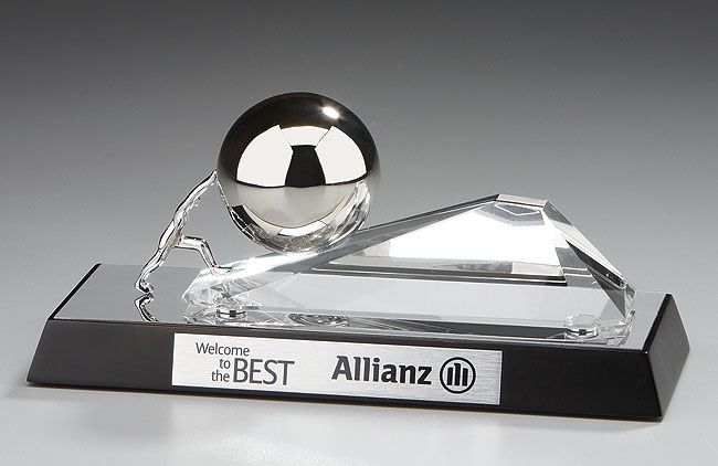 Dieser Award ist eine Kombination aus Kristallglas, Metall und Holzsockel und steht symbolisch für Willenskraft und Problemlösungen. Die ausdruckstarke Symbolik dieser Auszeichnung wirkt absolut motivierend.