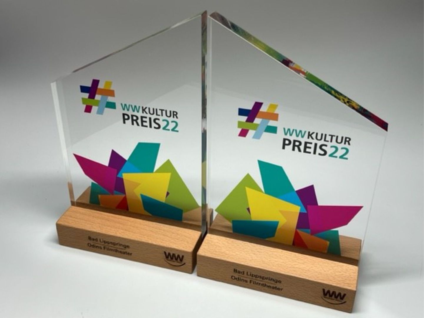 Nebeneinanderstehend ergibt das Gesamtbild eine Breite von fast 30cm - an der Spitze 250mm hoch. Der KulturHauptpreis ist komplett nachhaltig gefertigt (recyceltes Acrylglas + Holzsockel aus nachhaltiger Forstwirtschaft + Verarbeitung der Sockel in einer solzialen Werkstatt) - und schenkt 9 unterschiedlichen Projekten gleich doppelte Freude!