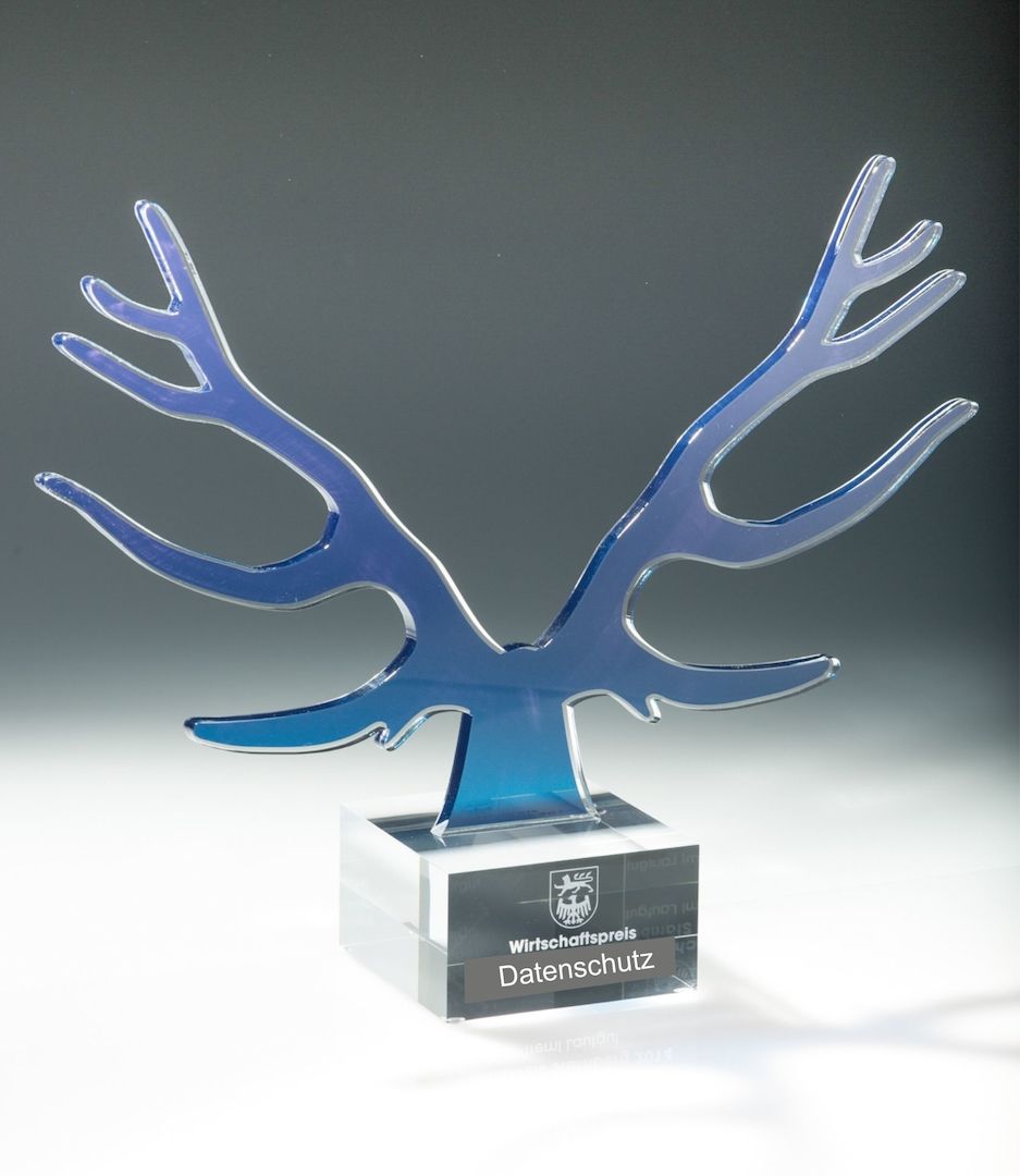 Auszeichnung konturgeschnitten und vollflächig bedruckt in Form eines Geweihs