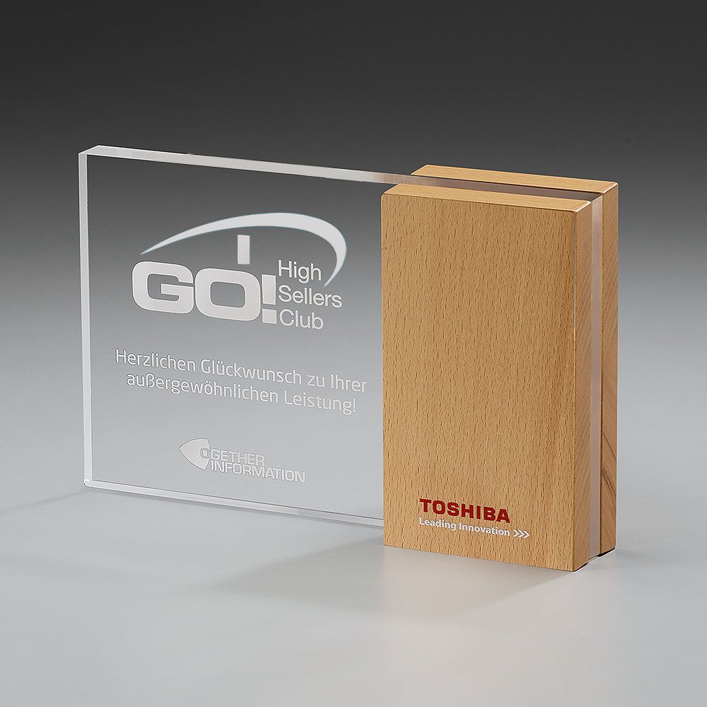 Holz/-Acrylglas-Aufsteller mit Buchenholz aus nachhaltiger Forstwirtschaft